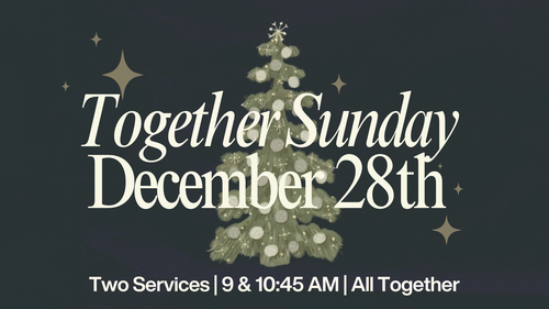 Together Sundays are special services when our entire CHURCH family gathers in one room to worship as one. Instead of our usual kids’ programs and FSM gatherings, we invite EVERYONE—adults, students, and kids—to worship side by side. These Sundays give us a meaningful opportunity to experience the unity of our church. We would love for you to join us as we worship TOGETHER!