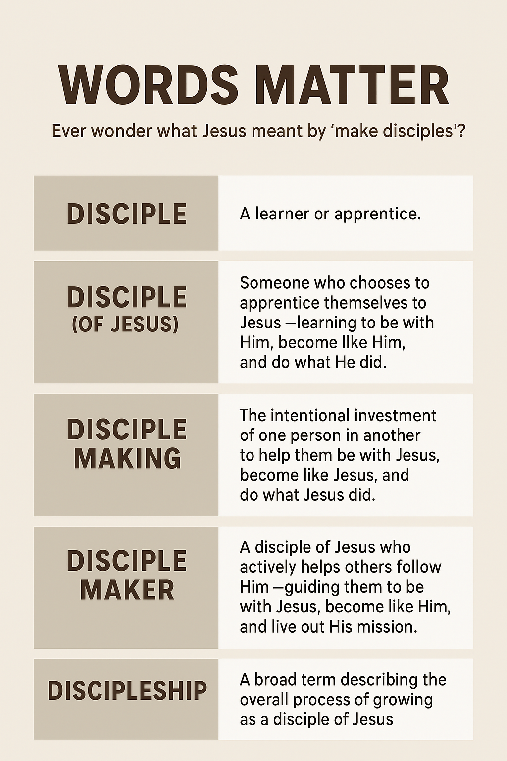 A broad term describing the overall process of growing as a disciple of Jesus and helping others do the same. However, in recent decades, it has often been reduced to education or information transfer. While learning is essential, information alone is not the goal—transformation and equipping are.